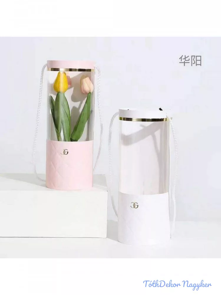 Papír virágtartó cső ablakos - Rózsaszín