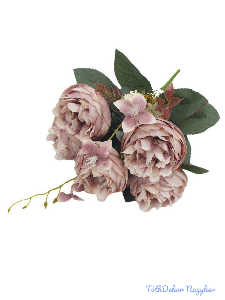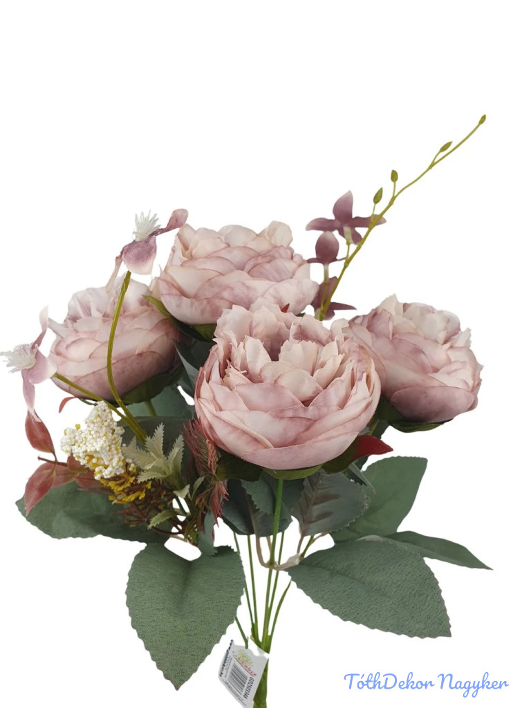 Peónia 5 fejes selyemvirág csokor 39cm - Púder