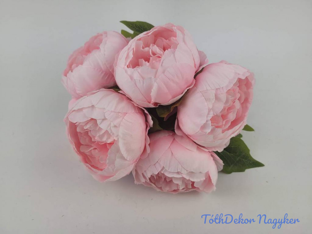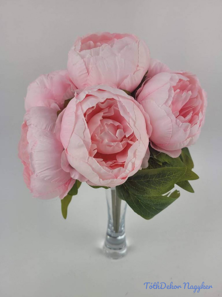 Peónia 6 ágú selyem csokor 30 cm - Rózsaszín