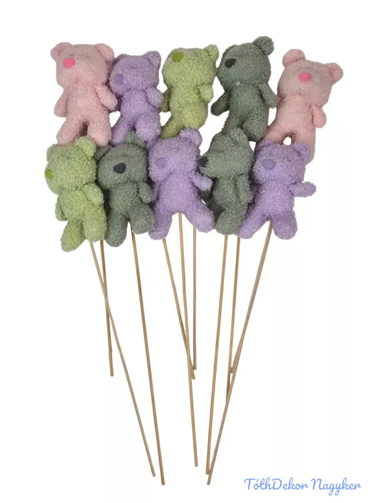 Kb.11*10 cm maci + kb 30-35 cm pálca, az ár egy darabra értendő, 10 darabos vegyes csomagra rendelhető. A színösszeállítás a képtől minimálisan eltérő lehet.