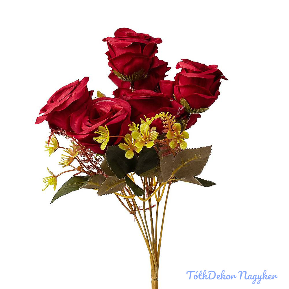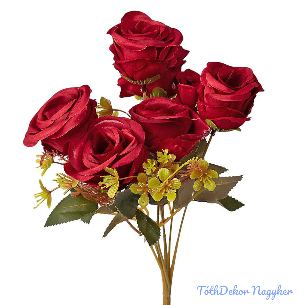 Rózsa 7 ágú selyemvirág csokor 31cm - Bordó