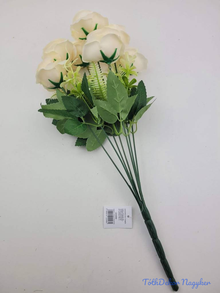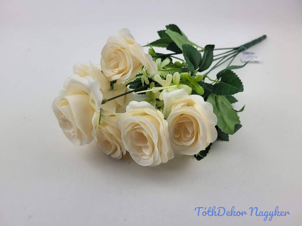 Rózsa 7 ágú selyemvirág csokor 42cm - Halvány Barack