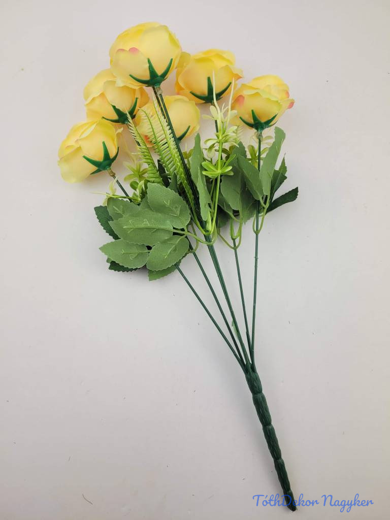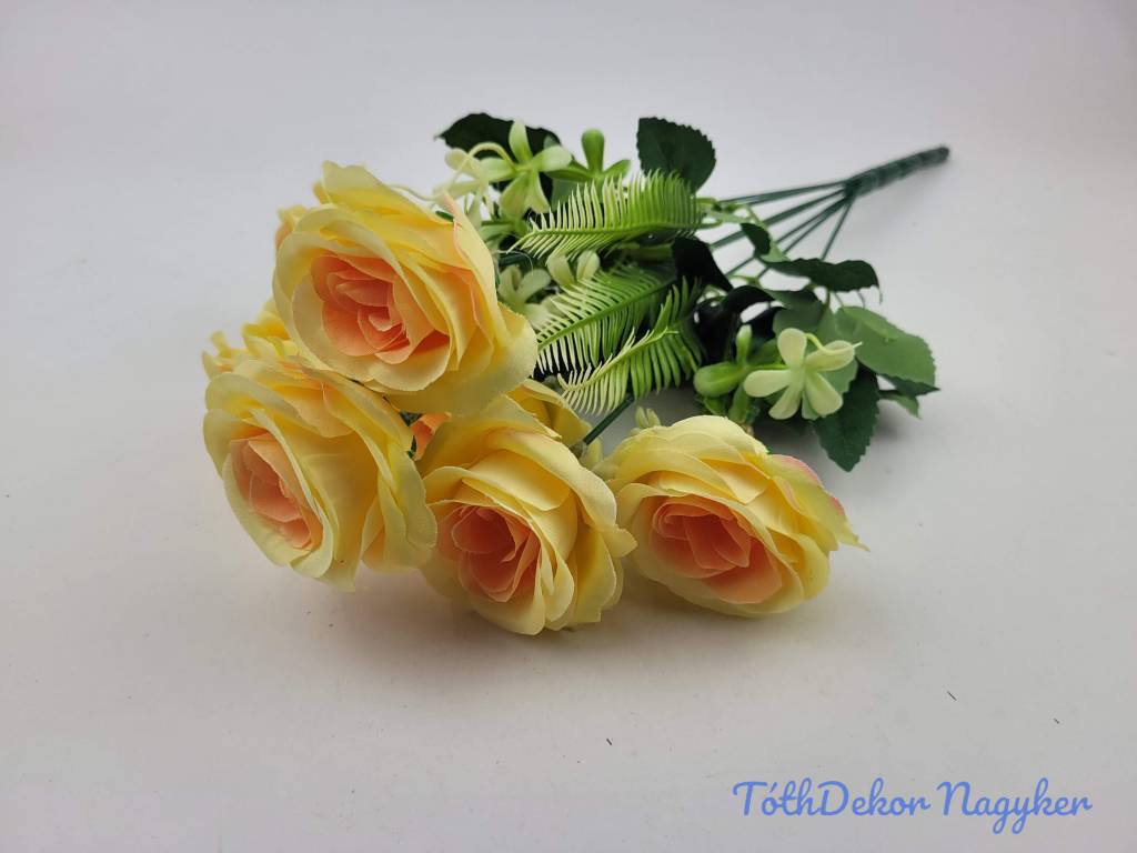 Rózsa 7 ágú selyemvirág csokor 42cm - Sárgás