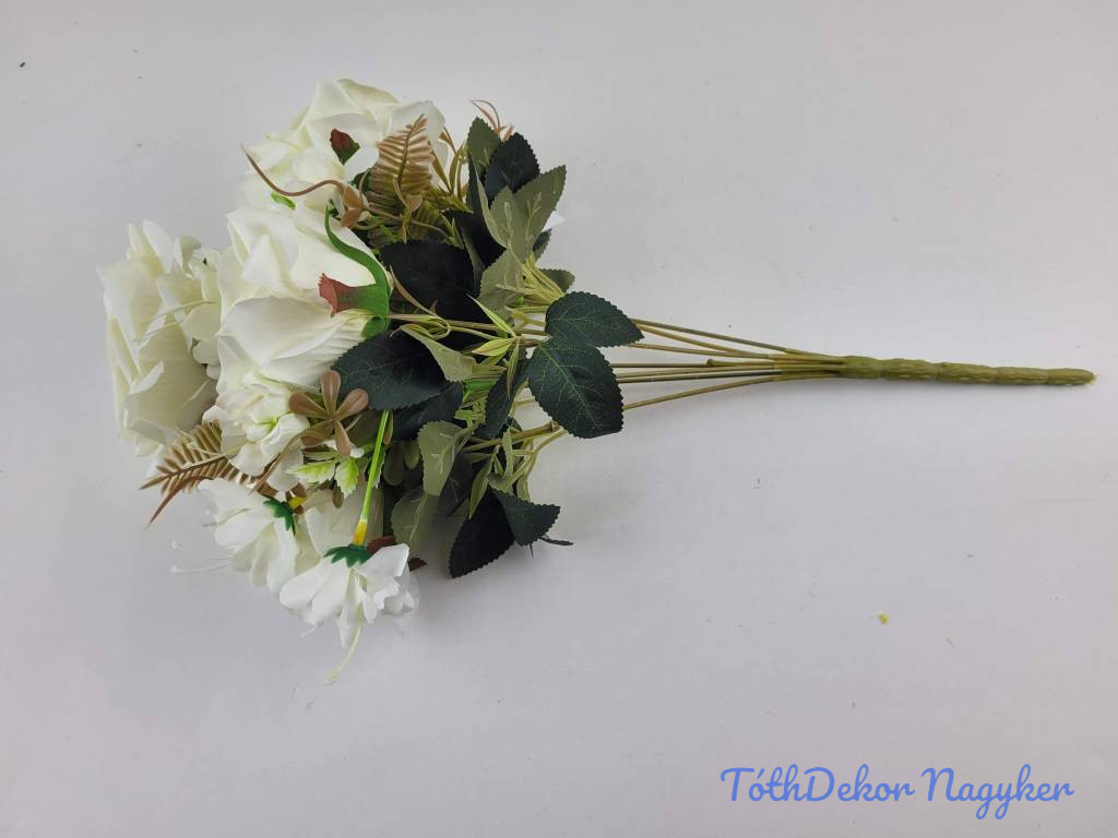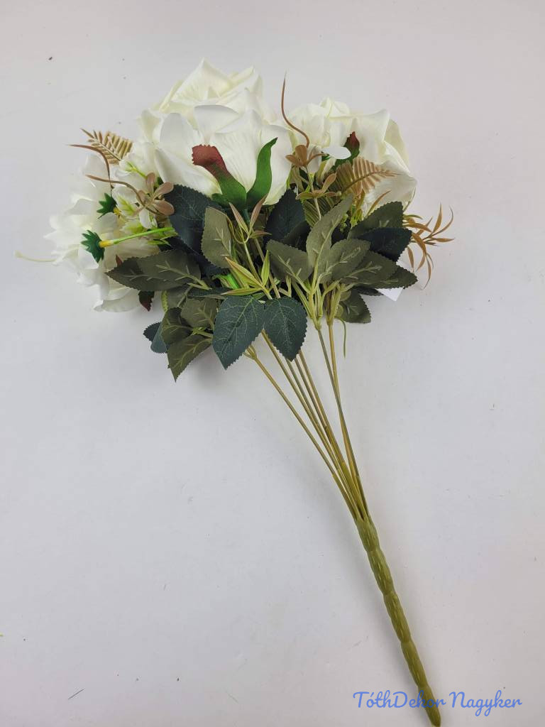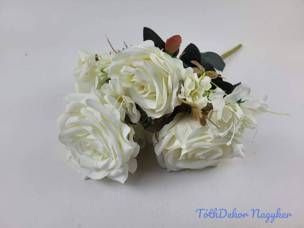 Rózsa 7 ágú selyemvirág csokor 43cm - Krém