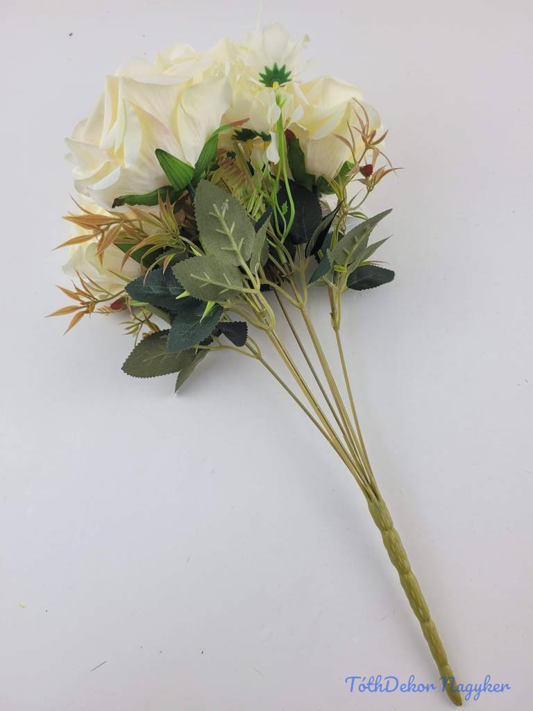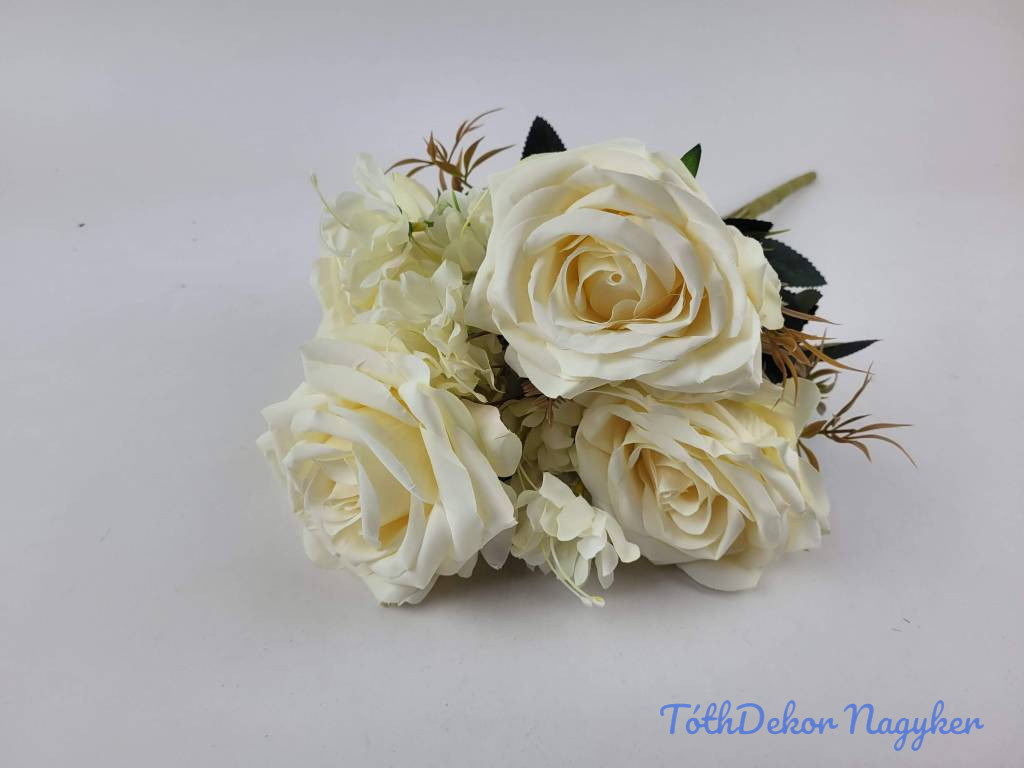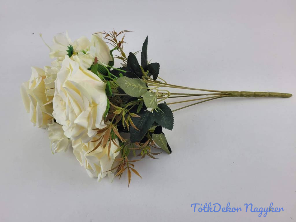 Rózsa 7 ágú selyemvirág csokor 43cm - Vaj