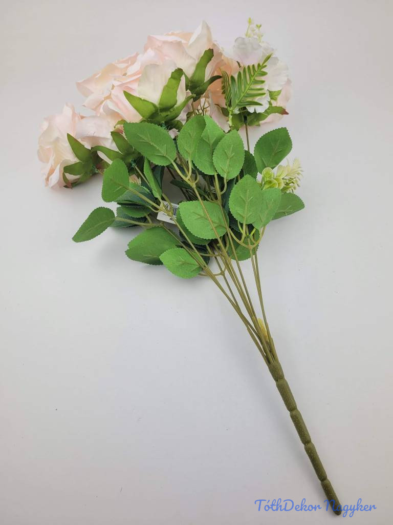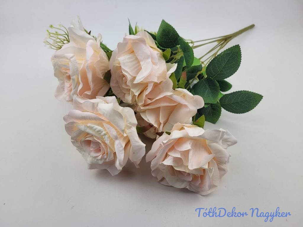 Rózsa 9 ágú selyemvirág csokor 49 cm - Krém-Barack
