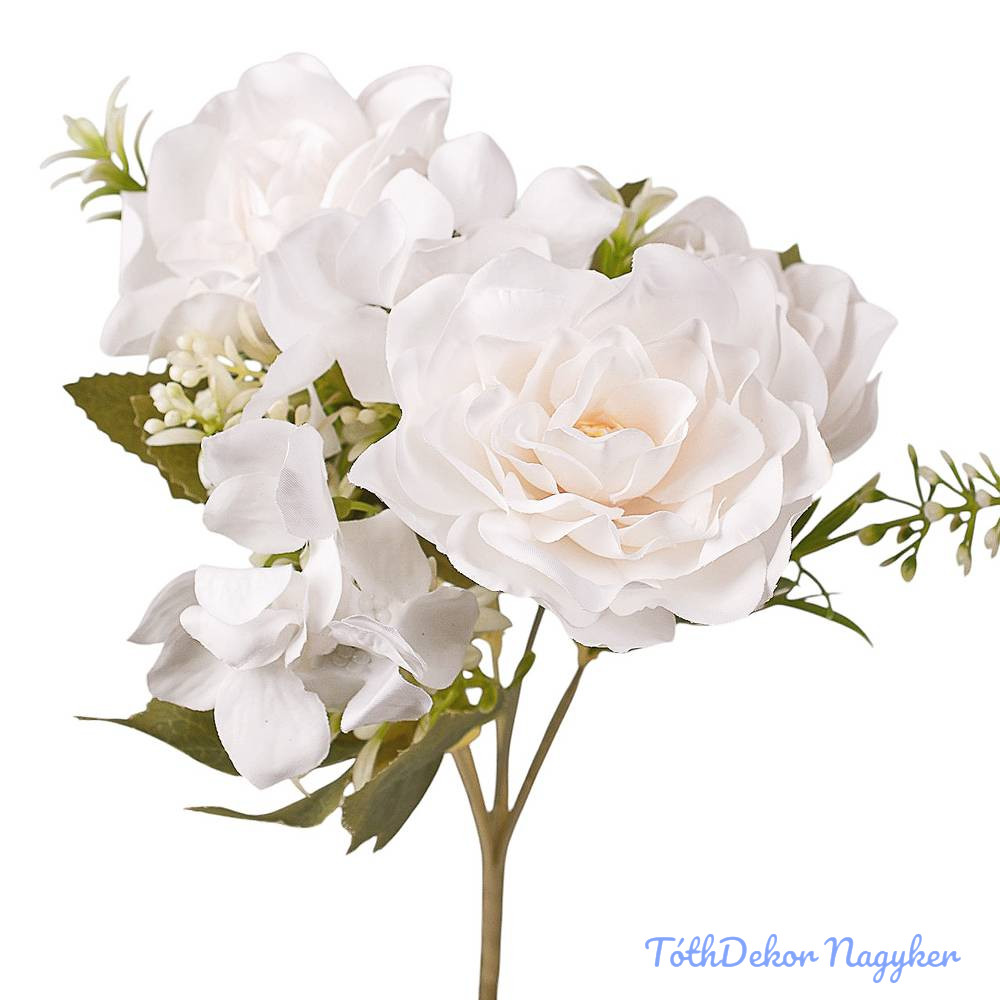 Rózsa-Hortenzia 5 ágú selyem csokor 30cm - Fehér