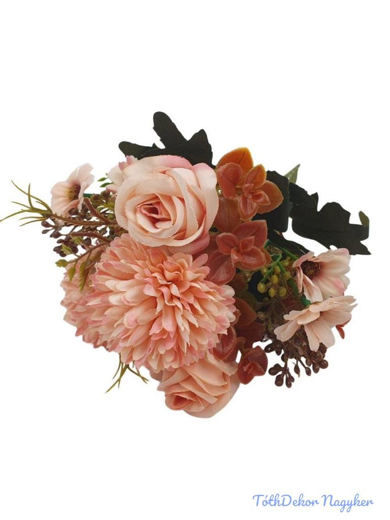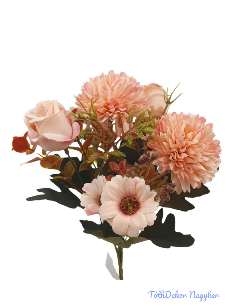 Rózsa-Krizantém vegyes selyemvirág csokor 31cm - Barack