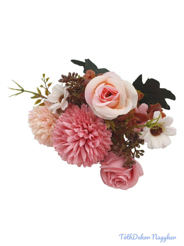 Rózsa-Krizantém vegyes selyemvirág csokor 31cm - Rózsaszín
