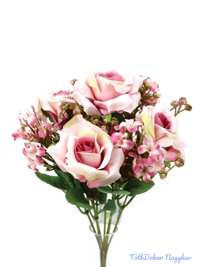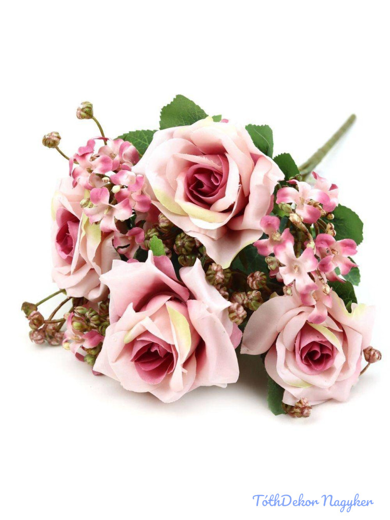 Rózsa csokor díszítőkkel 31cm - Cirmos Mályva