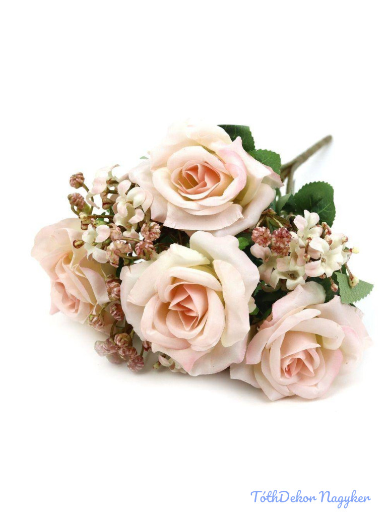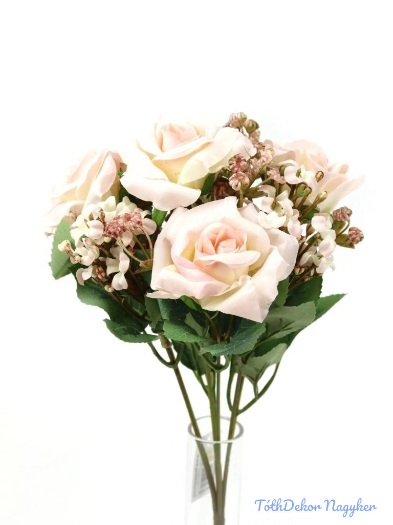 Rózsa csokor díszítőkkel 31cm - Halvány Rózsaszín