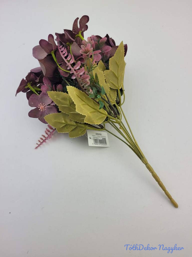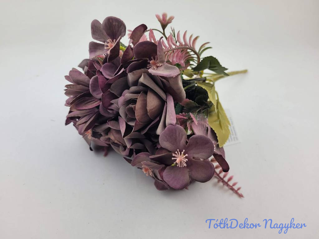 Rózsa + kis virág 7 ágú selyem csokor 29cm - Mély bordó