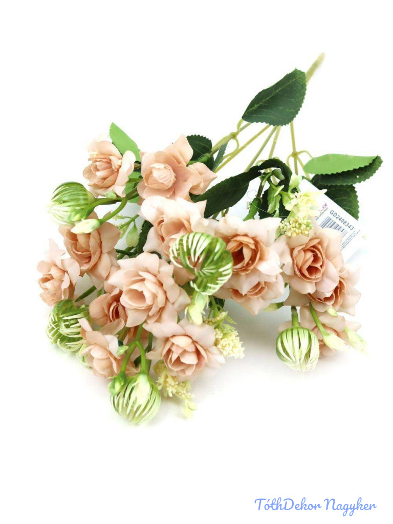 Rózsa kisfejű selyem csokor 35cm - Barack