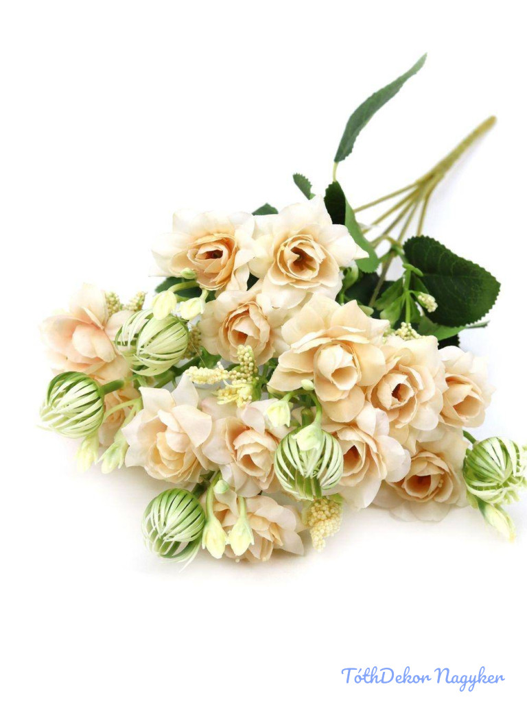 Rózsa kisfejű selyem csokor 35cm - Halvány Barack