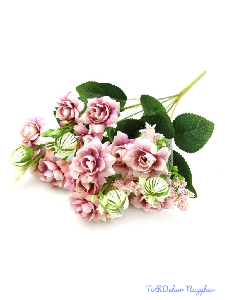 Rózsa kisfejű selyem csokor 35cm - Világos Mályva