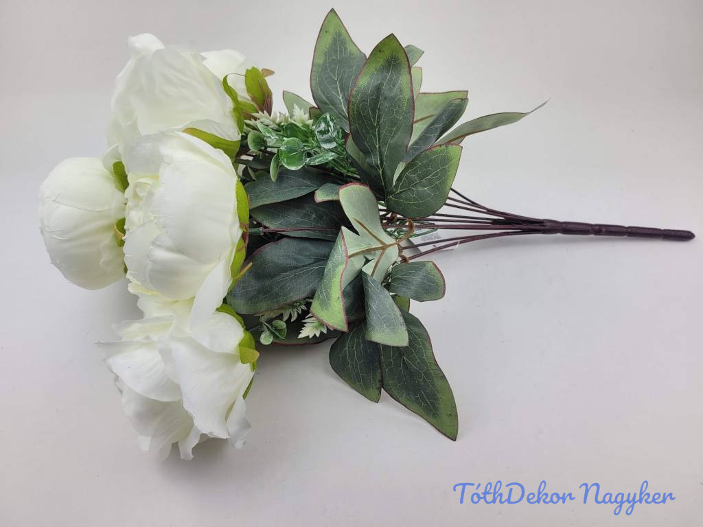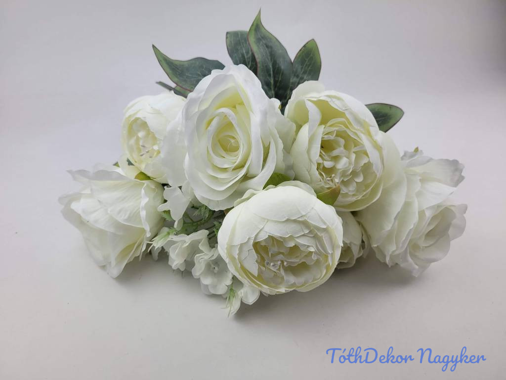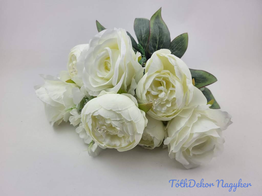 Rózsa-peónia 9 ágú selyemvirág csokor 47cm - Krém