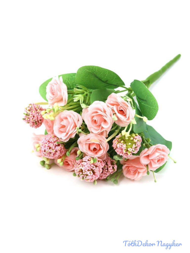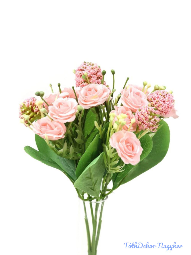 Rózsa selyem csokor díszítővel 29cm - Halvány Rózsaszín
