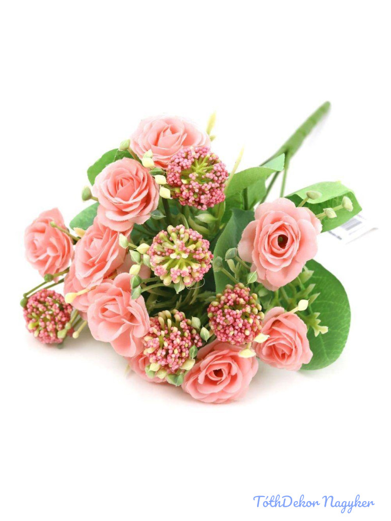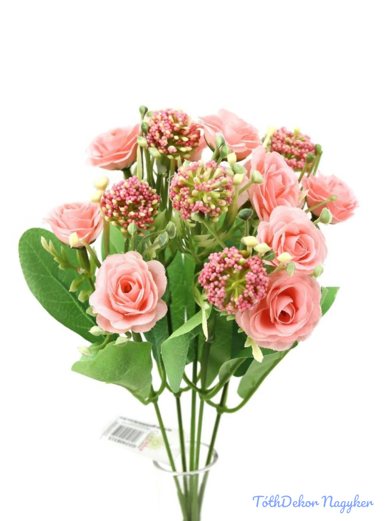 Rózsa selyem csokor díszítővel 29cm - Sötét Rózsaszín