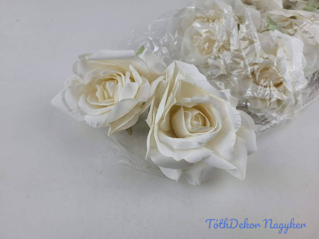 Rózsa selyemvirág fej nyílott 10 cm 911 - Ekrü
