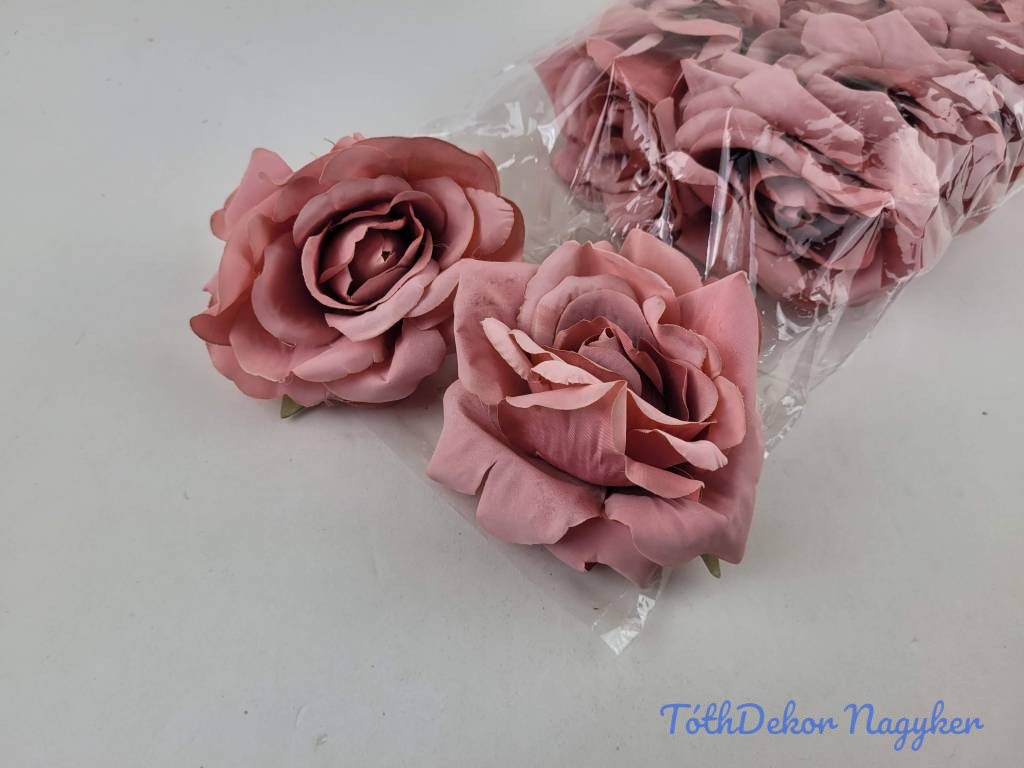 Rózsa selyemvirág fej nyílott 10 cm 911 - Fáradt Rózsaszín