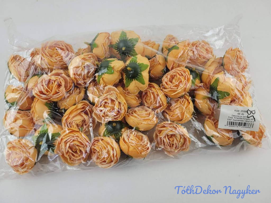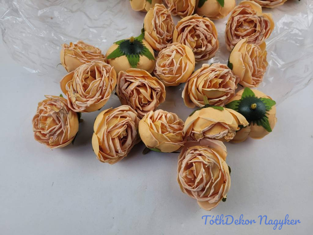 Rózsa szárazhatású selyem fej 4,5cm - Narancs
