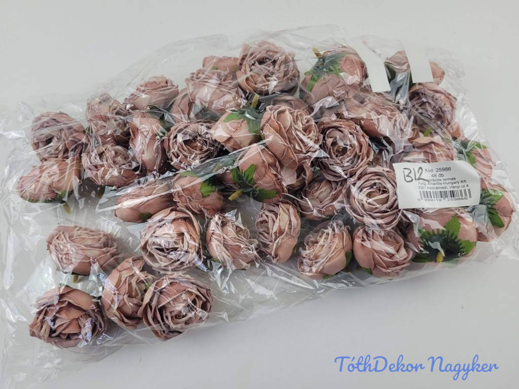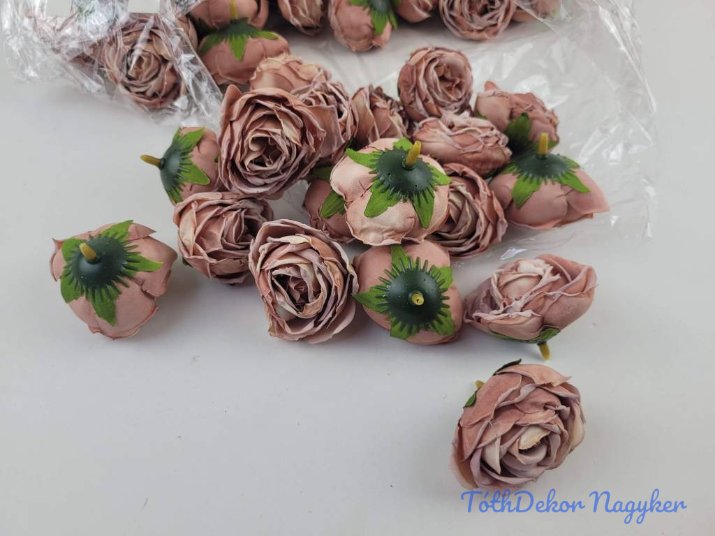 Rózsa szárazhatású selyem fej 4,5cm - Sötét Púder