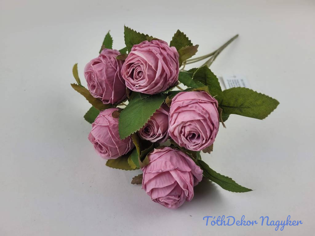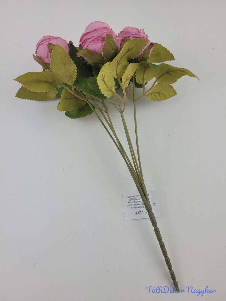 Szárazhatású, bimbós-gömbölyded 6 ágú rózsa selyemvirág csokor.