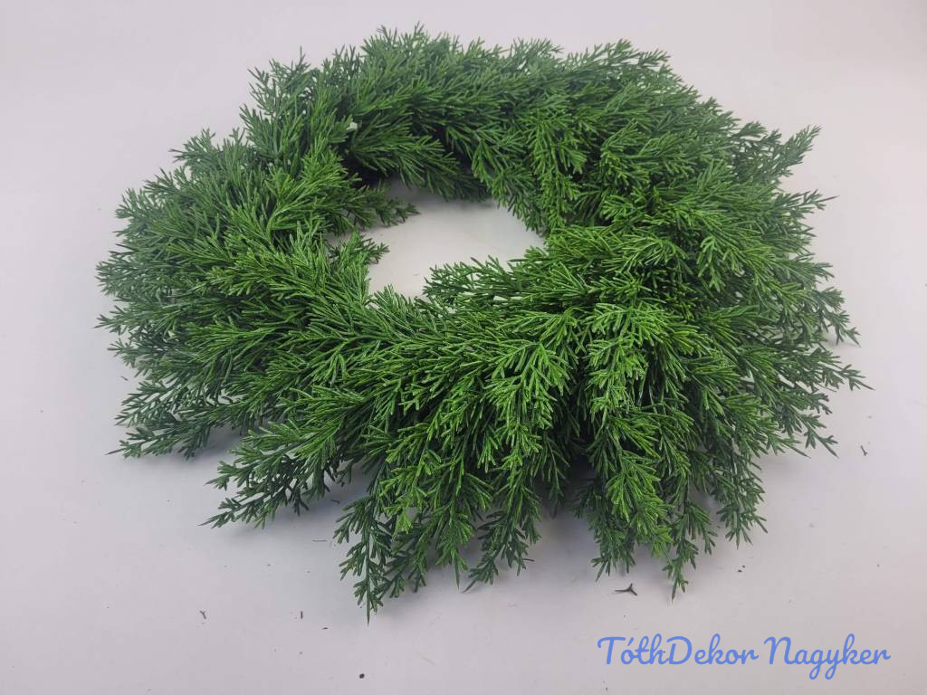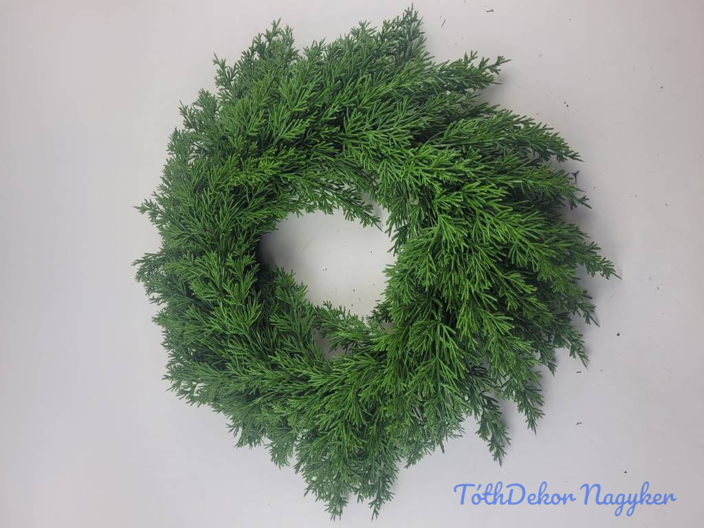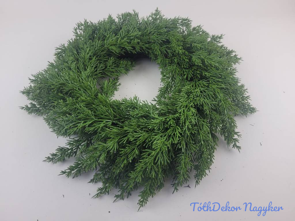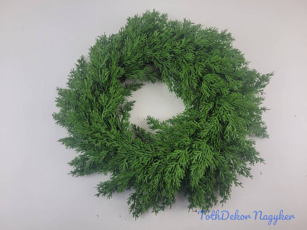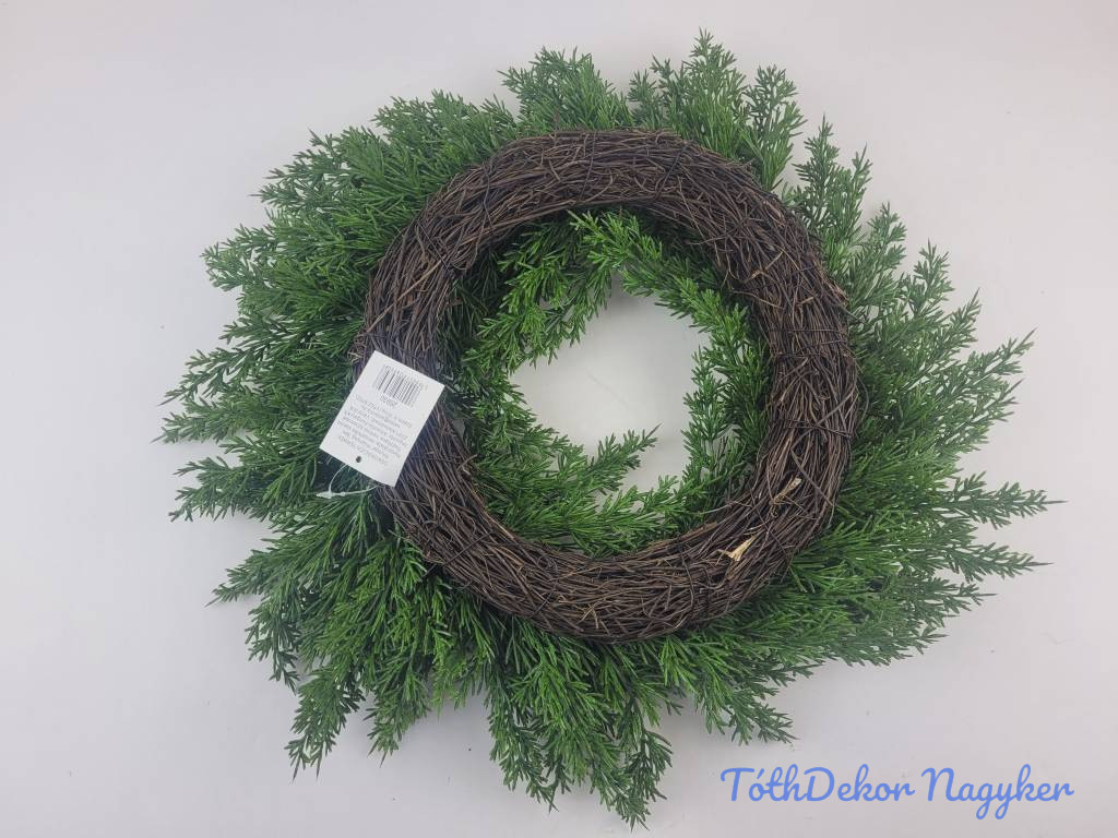 Gumis tapintású műzöld koszorú 45 cm átmérővel. Az alapja kb 28cm átmérőjű vessző koszorú.