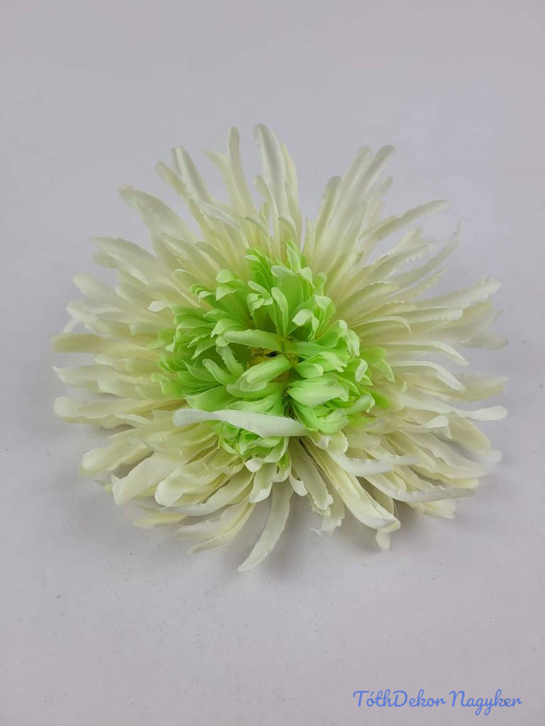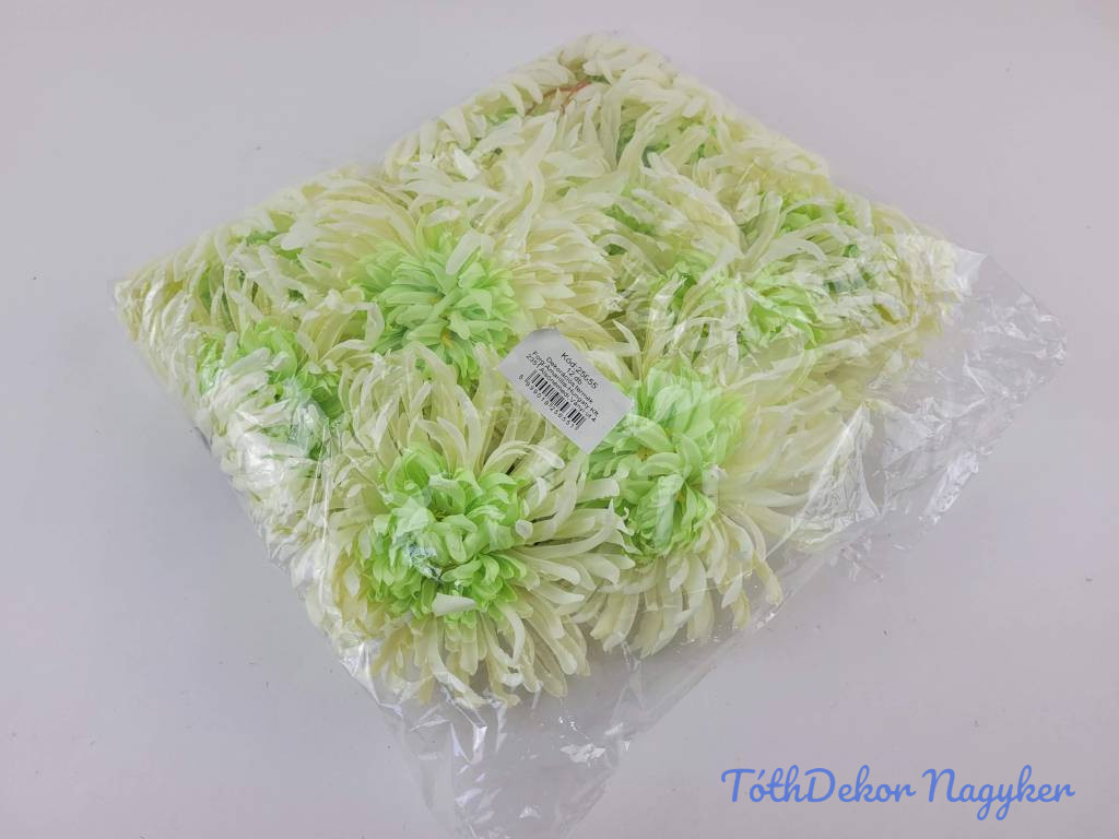 Tűszirmú krizantém fej 16cm - Krém-Zöld