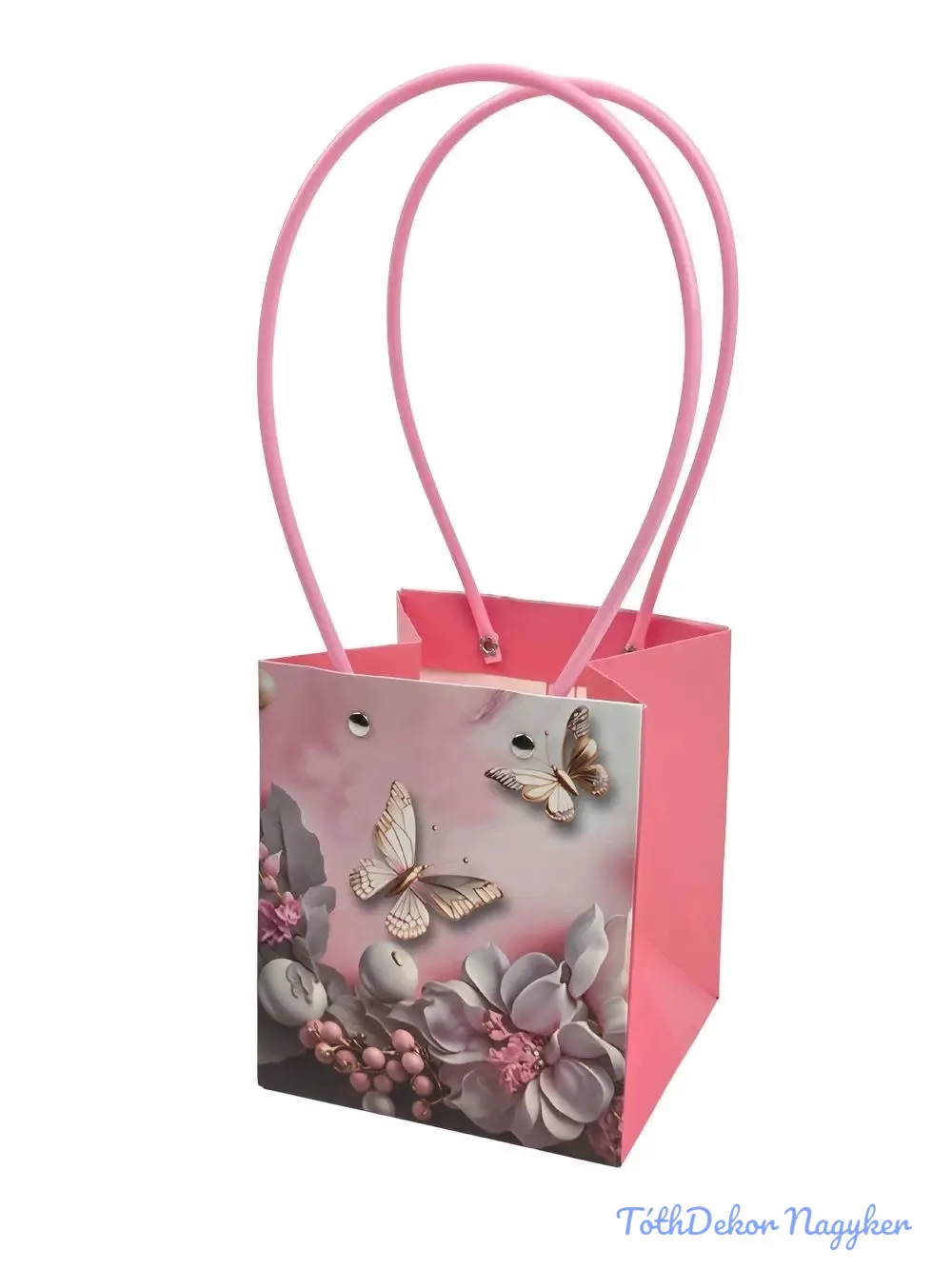 Virágtáska kocka, mintás - Rózsaszín pillangós