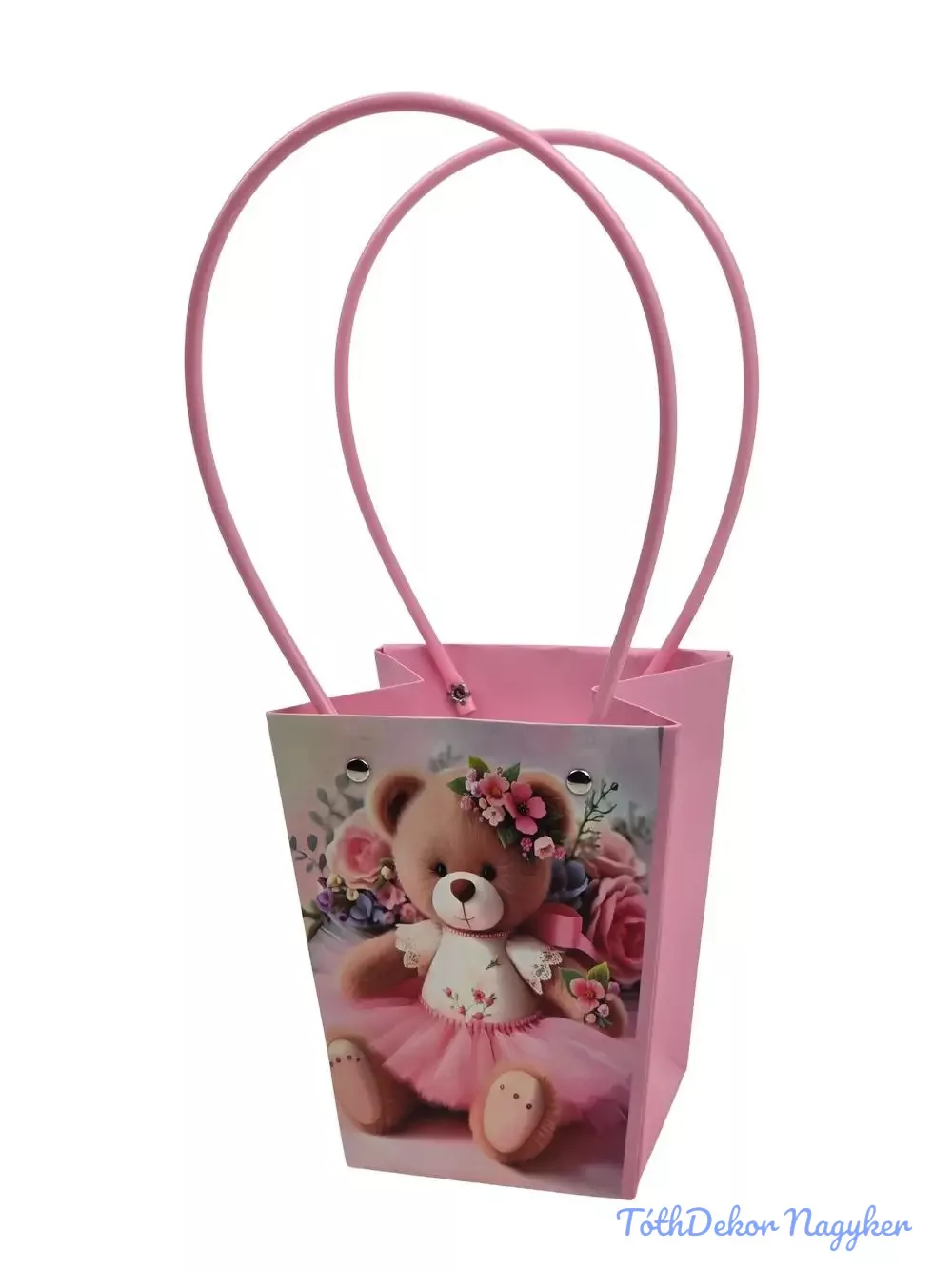 Virágtáska nagy trapéz mintás - Rózsaszín macis