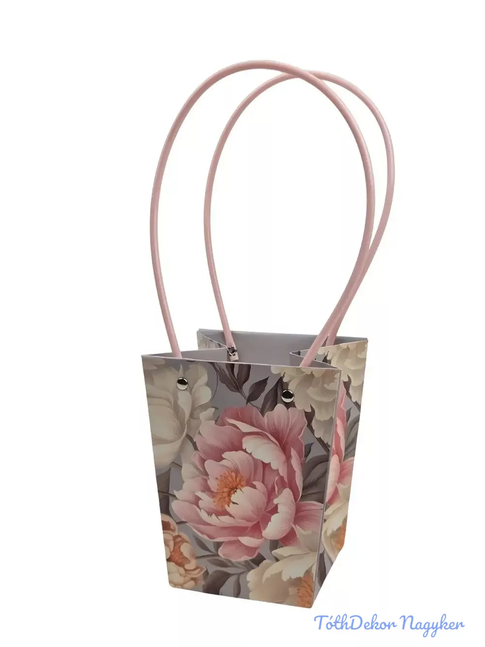 Virágtáska nagy trapéz virágmintás - Barack Peónia