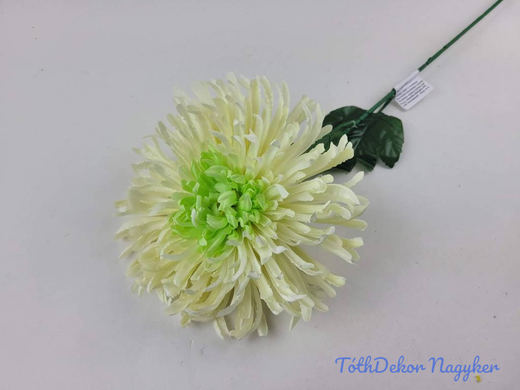 Pók krizantém szálas selyemvirág D19cm M68cm - Krém-Zöldes