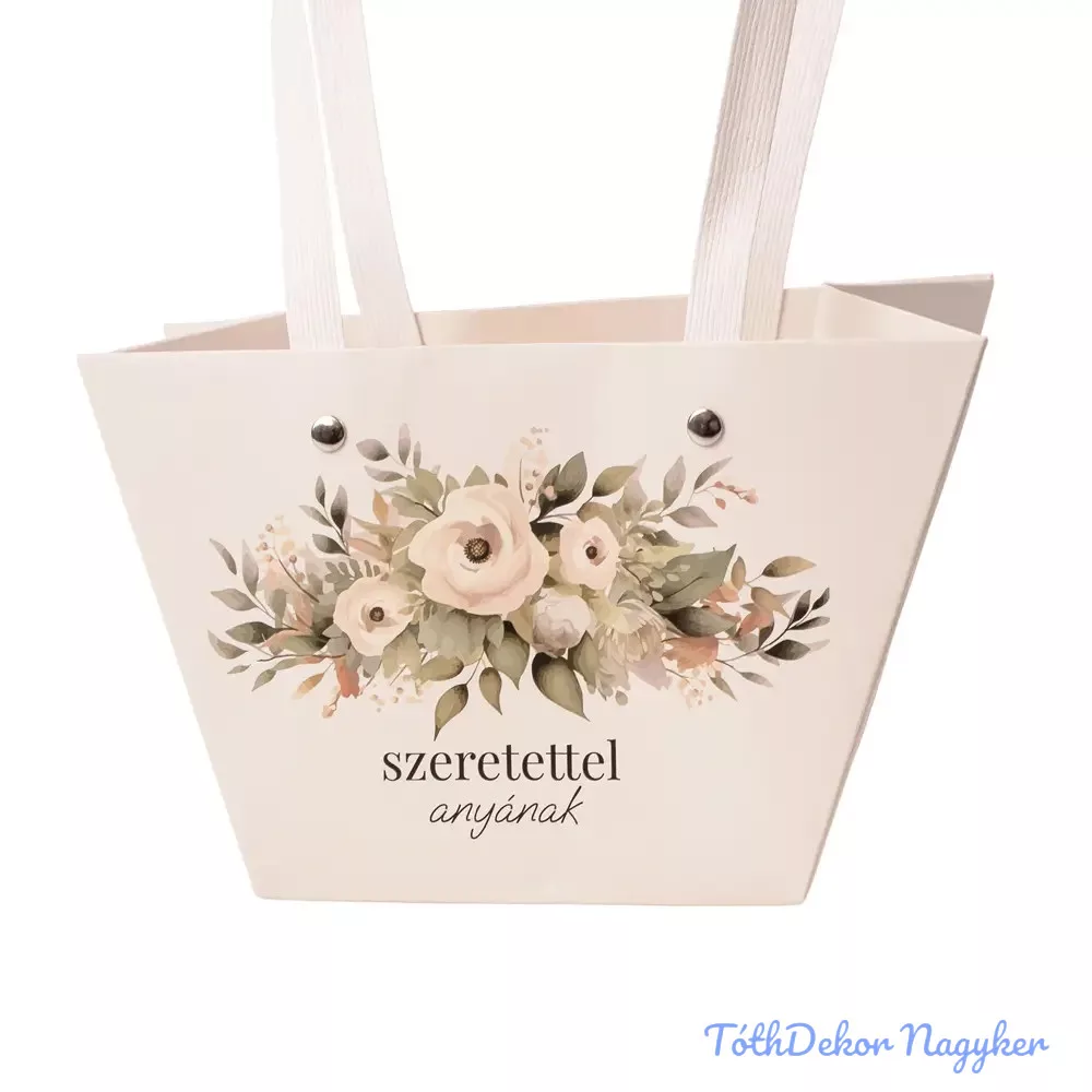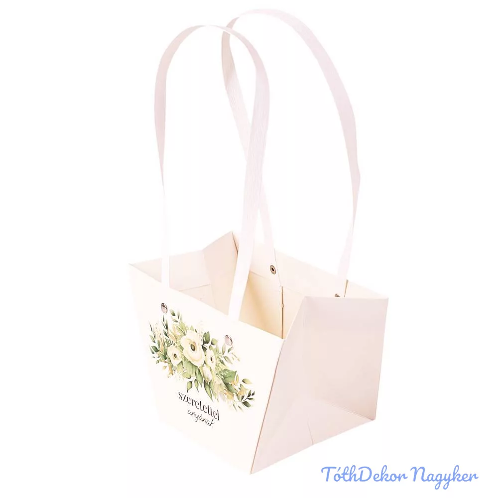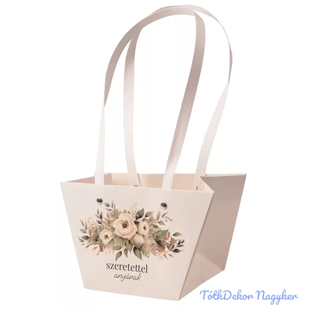 "Szeretettel anyának" feliratos virág táska 20(h) x 12(sz) x 12(m) cm