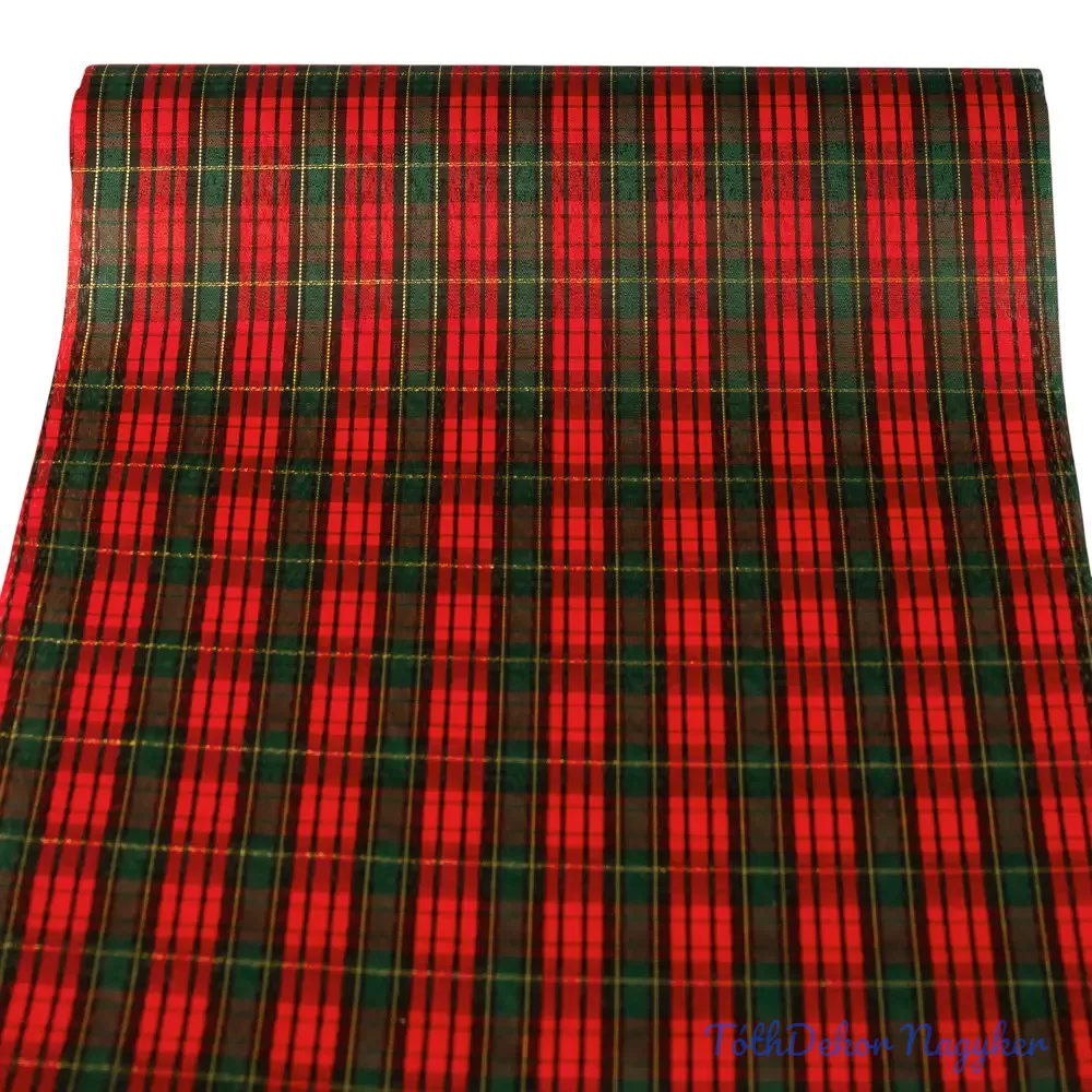 Karácsonyi skótkockás dekorációs anyag, asztali futó, 28cm x 2.7m